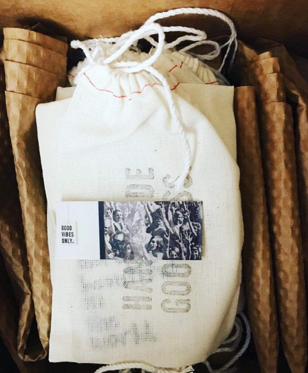packaged safely with kraft paper (no plastic) and arrives in a fabric bag for gifting.