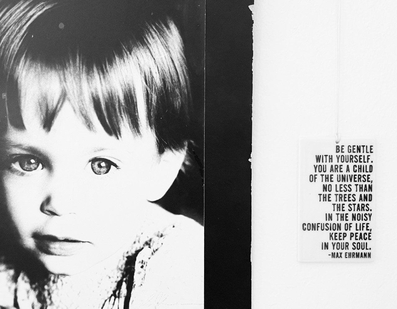 a ceramic wall tag with beautiful words on self compassion from max ehrmann, who was an american writer, poet, and attorney from indiana. he often wrote on spiritual themes.